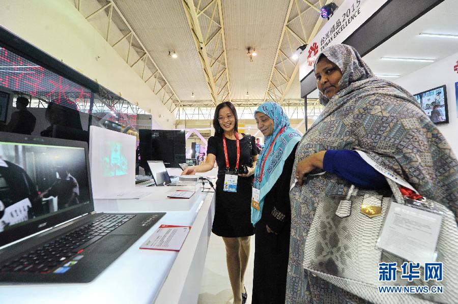 9月2日,一位台湾参展商向两位来自苏丹的参观者介绍微型投影仪产品。在吉林长春举行的第十届中国东北亚博览会上,70家台湾优质品牌亮相台湾精品馆,涵盖文化创意、运动休闲、机械电子等台湾特色产品,吸引了大批参观者前来参观选购。新华社记者 张楠 摄