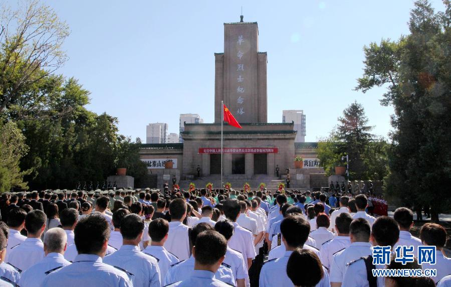 9月2日,市民在张家口市察哈尔烈士陵园纪念先烈。当日,为纪念中国人民抗日战争暨世界反法西斯战争胜利70周年,河北张家口市举办“勿忘国耻圆梦中华”大型祭扫活动,来自市直机关、部队及社会群众、学生等代表参加。 新华社记者王晓 摄