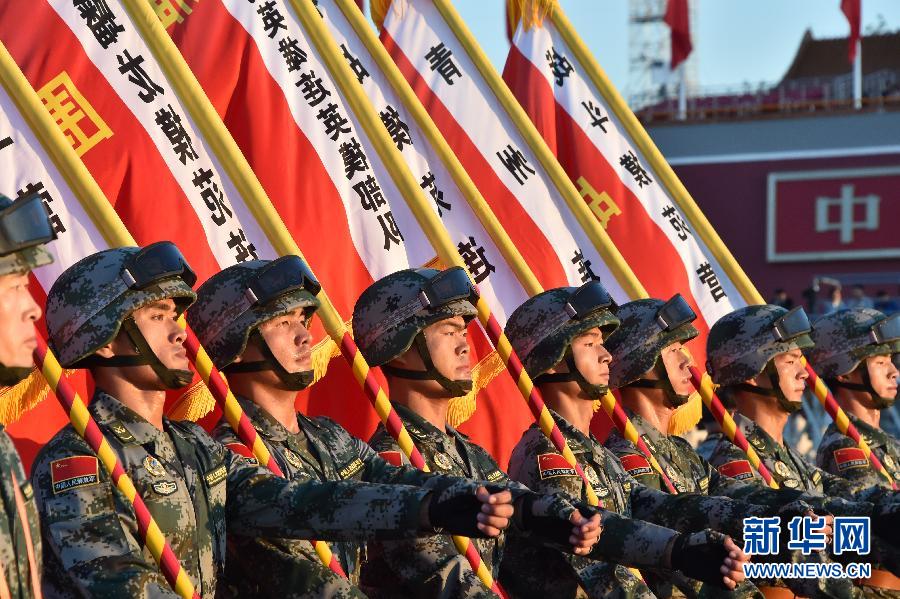 9月3日,中国人民抗日战争暨世界反法西斯战争胜利70周年纪念大会将在北京隆重举行。这是参加阅兵的受阅人员在进行最后的演练。新华社记者徐速绘摄