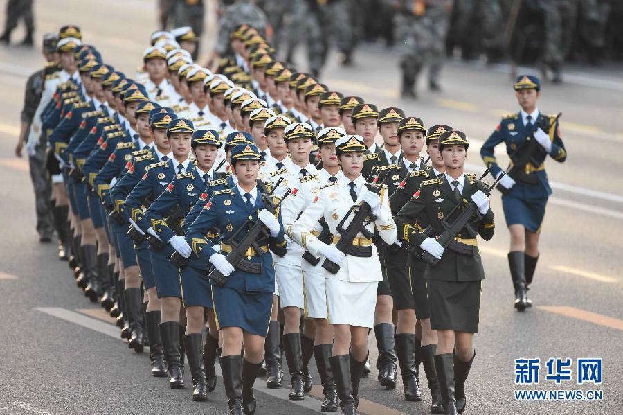 9月3日,中国人民抗日战争暨世界反法西斯战争胜利70周年纪念大会将在北京隆重举行。这是三军仪仗队女兵在做准备。 新华社记者 黄孝邦 摄