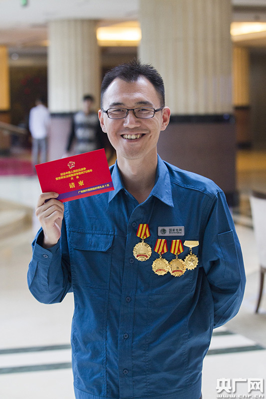 今年36岁的王进是国家电网山东省电力公司检修公司班长,他从一名普通巡线员干起,成长为全国劳动模范。(央广网记者 韩靖摄)