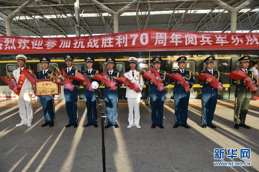 9月7日,武警宁夏总队在银川站举行仪式,欢迎军乐队队员载誉归来。当日,武警宁夏总队军乐队赴京参加中国人民抗日战争暨世界反法西斯战争胜利70周年纪念大会的10名官兵载誉归来。据了解,武警宁夏总队军乐队的这10名战士在经过百余日的艰苦集训后,圆满完成了9月3日阅兵现场吹奏任务,军乐队集体被评为先进单位。新华社记者 李然 摄