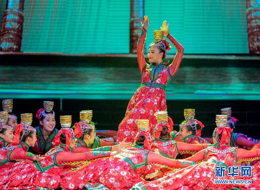 9月7日,在内蒙古呼和浩特民族剧场,演员表演舞蹈《顶碗》。当日,以“圆教育梦想,展教师风采”为主题的呼和浩特市玉泉区庆祝教师节专场文艺演出举行,该区的数百名老中青教师与呼和浩特民族歌舞剧院的演员们同台表演,共同迎接教师节的到来。新华社发(丁根厚 摄)