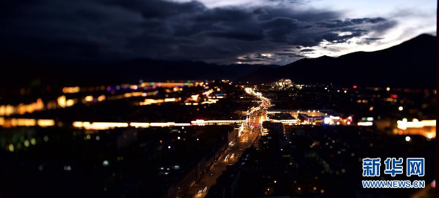 美丽的拉萨夜景(9月6日摄)。在西藏自治区成立50周年之际,记者用移轴镜头拍摄了拉萨市部分著名建筑和景观。拉萨市是我国西藏自治区的政治、经济、文化中心,也是藏传佛教圣地,经过50年的建设,拉萨的城市面貌日新月异。新华社记者 普布扎西 摄