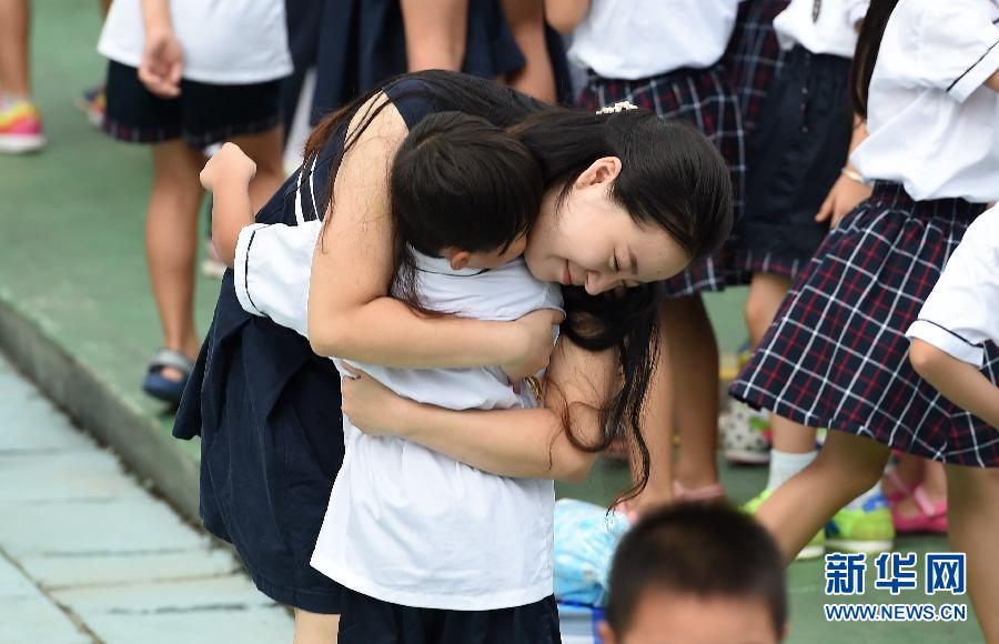 9月10日,在广西南宁市滨湖路小学,老师和学生拥抱庆祝教师节暨“爱生日”。当日,广西南宁市滨湖路小学举行第31个教师节暨第10个“爱生日”活动,全校师生相互拥抱,校园里充满了老师对学生的爱以及学生对老师的感恩之情。新华社记者 黄孝邦 摄