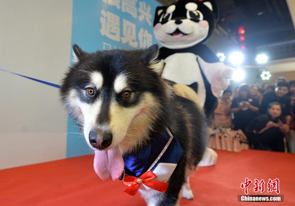 9月11日,韩寒的宠物狗雪橇犬小马达亮相南京德基广场韩寒“很高兴遇见你”餐厅举行粉丝见面会,吸引了百余号粉丝团前来一睹小马达的风采。小马达曾出演了韩寒的电影《后会无期》,并得到了无数观众的喜欢,名气一点都不亚于它的主人韩寒。李珂 摄