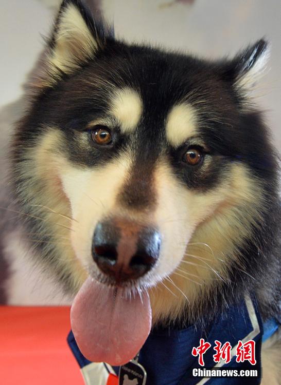 9月11日,韩寒的宠物狗雪橇犬小马达亮相南京德基广场韩寒“很高兴遇见你”餐厅举行粉丝见面会,吸引了百余号粉丝团前来一睹小马达的风采。小马达曾出演了韩寒的电影《后会无期》,并得到了无数观众的喜欢,名气一点都不亚于它的主人韩寒。李珂 摄