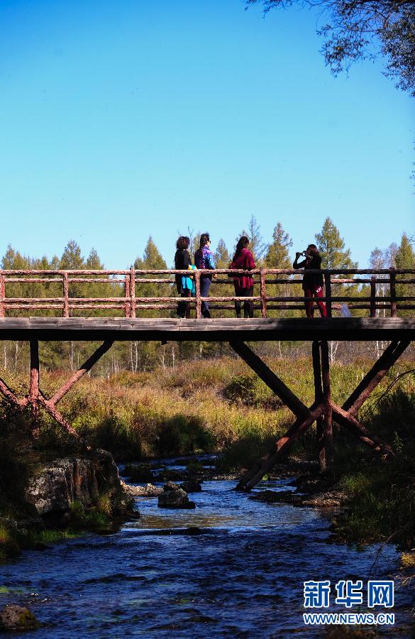 9月13日,游客们在内蒙古阿尔山三潭峡景区游览。随着我国北方气温逐渐降低,内蒙古兴安盟阿尔山也进入了美丽缤纷的秋季,不少游客在这里流连忘返,感受纯净多彩的大自然。 新华社记者 连振摄