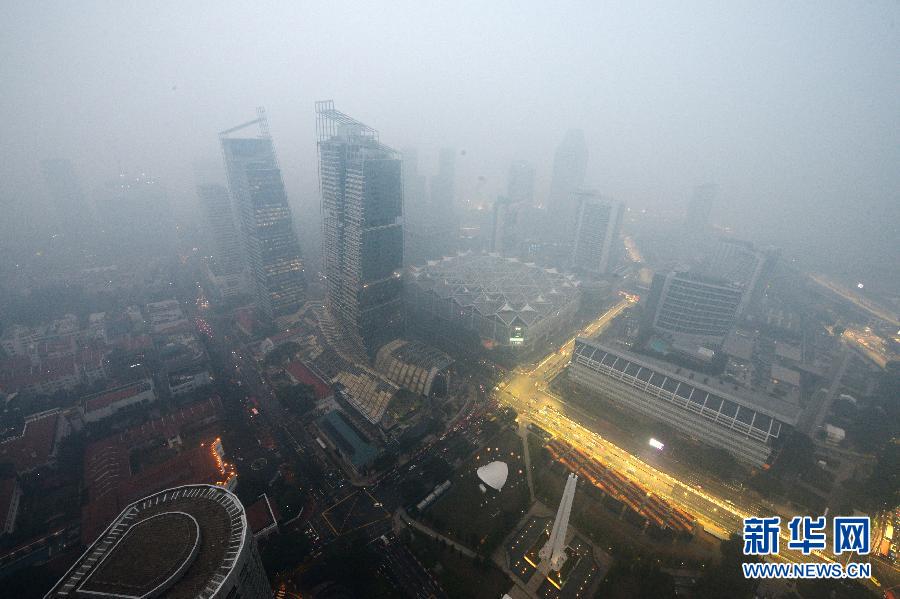 9月14日,烟霾笼罩新加坡行政文化区。当日,新加坡污染指数(PSI)于下午6时一度达到150的不健康水平。 新华社发(邓智炜摄)