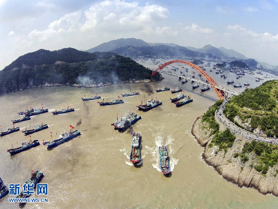 9月16日,渔船从浙江象山石浦渔港浩浩荡荡出发,开赴渔场。当日,为期3个半月的东海伏季休渔结束,众多渔船劈波斩浪,开往渔场。 新华社发(何幼松 摄)