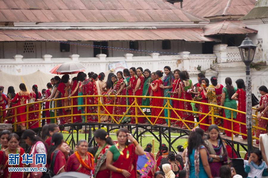 9月16日,在尼泊尔首都加德满都举行的提吉节活动上,妇女们排队等待祈祷。提吉节又叫女人节,共持续三天。在提吉节上,已婚妇女会禁食并为丈夫祈祷健康和长寿,未婚女子则祈祷嫁给健康英俊的男子。新华社发(普拉塔普·塔帕摄)