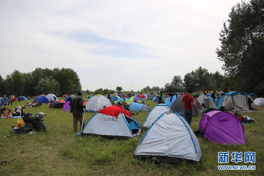 9月16日,大批难民在塞尔维亚紧邻匈牙利的边境地区霍尔戈什聚集。