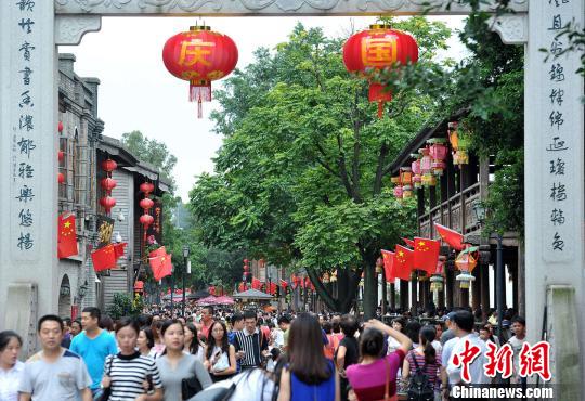 10月4日,福州千年古街南后街游人如织。国庆长假期间,中国十大历史文化名街之一、福州明清古建筑群——三坊七巷吸引了许多各地游客前来游玩。 张斌 摄