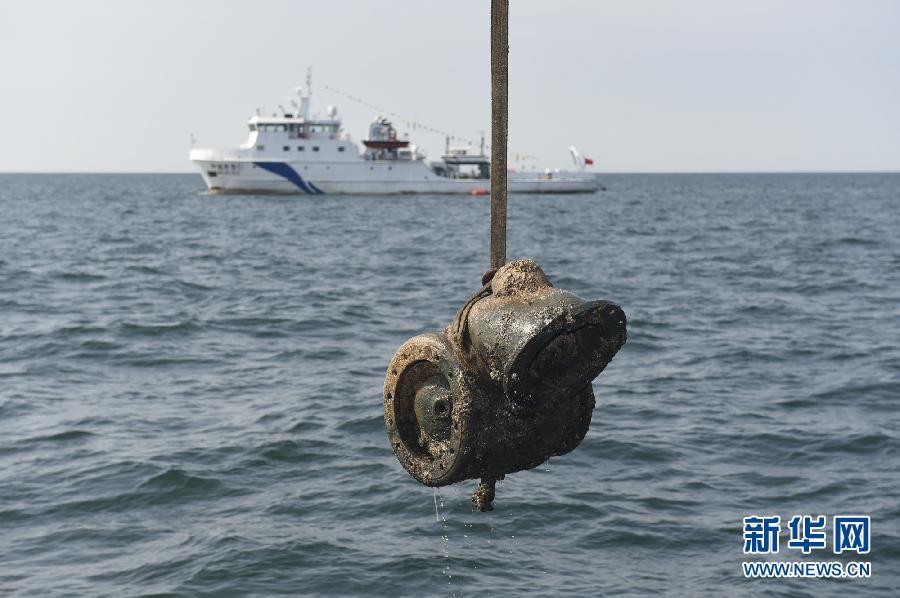 本次打捞出水的“致远舰”残骸。新华社记者 陈益宸 摄