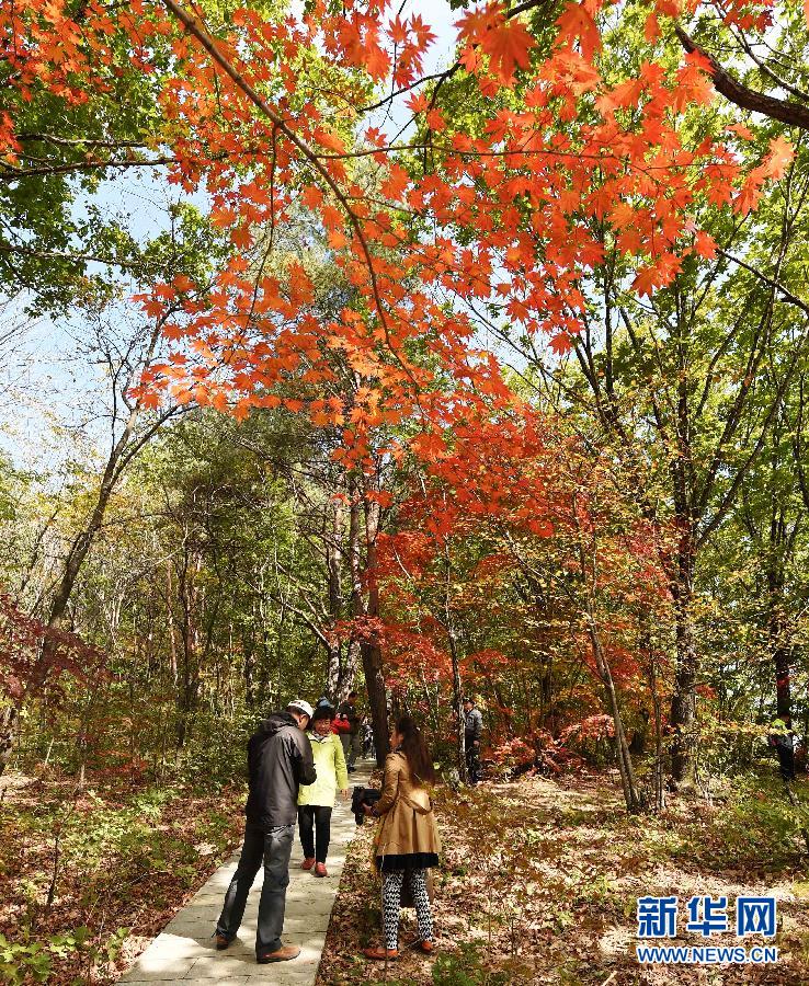 10月4日,游人在青山沟景区游览。 新华社记者 李钢 摄