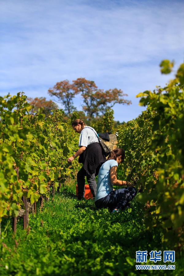 10月3日,在瑞士拉沃,人们在梯田葡萄园内采摘葡萄。 新华社记者 徐金泉 摄