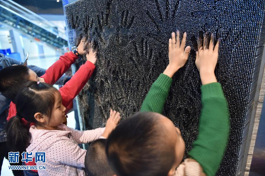 10月6日,在宁夏科技馆,孩子们在体验“像素与针幕”科普设备。国庆长假期间,宁夏科技馆特地举办主题为“科学总动员、国庆乐翻天”的“十一”主题活动,策划《魔幻泡泡秀》《奇妙的声音》《动手制作》等内容丰富并独具特色的科普互动活动,吸引许多家长带孩子前来参观。新华社记者 李然 摄