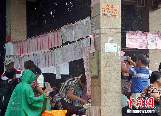 10月7日,福州于山景区相亲会吸引了许多家长前来了解有关征婚信息。 张斌 摄