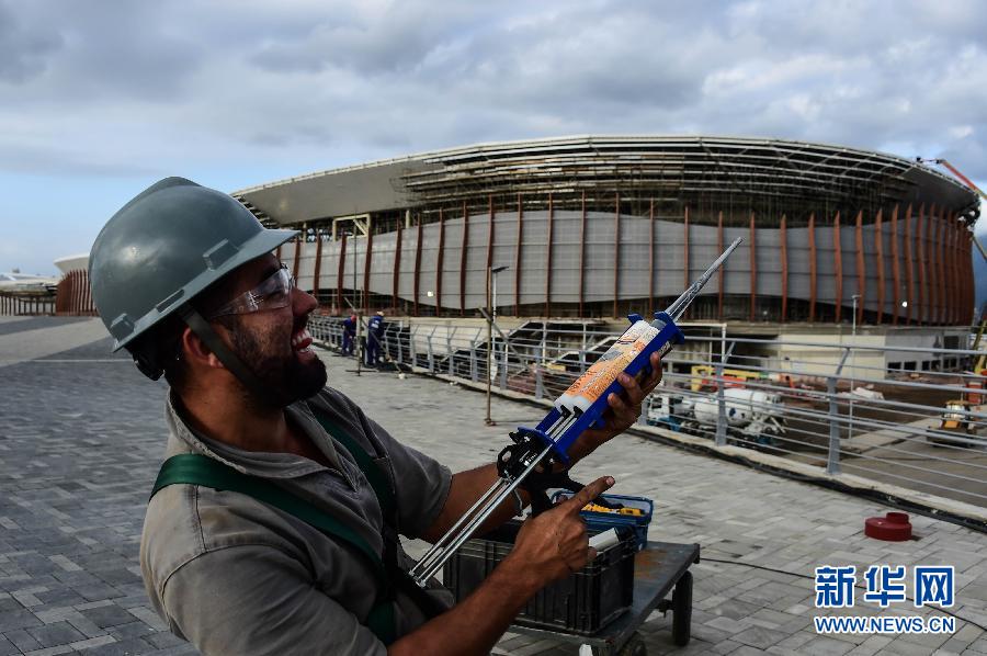 10月6日,一名工作人员在里约奥林匹克公园施工。第31届夏季奥林匹克运动会将于2016年8月5日-21日在巴西的里约热内卢举行,目前,众多场馆正在紧张地建设中。 新华社/法新