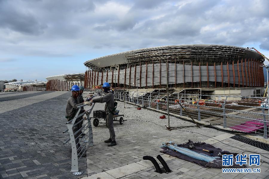 10月6日,工作人员在里约奥林匹克公园施工。第31届夏季奥林匹克运动会将于2016年8月5日-21日在巴西的里约热内卢举行,目前,众多场馆正在紧张地建设中。 新华社/法新