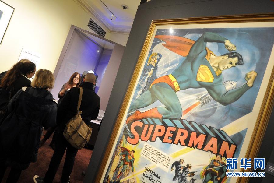 10月7日,媒体记者参观在美国纽约举办的“超级英雄”漫画文化展。 新华社记者王雷摄