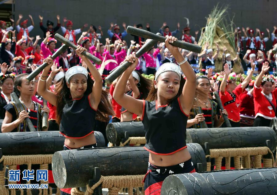 两名佤族姑娘在新米节活动上敲起欢庆的木鼓(10月3日摄)。云南沧源佤族自治县是全国两个佤族自治县之一,也是全国最大的佤族聚居县。佤族民风淳朴,热爱和崇尚自然,新米节以“农耕祭祀、感恩自然;品尝佳肴、圆梦佤山”为内容,通过舂新米赛、抢尝新谷、煮新米饭、舂糯米粑粑表演、抢运新谷赛等一系列彰显佤族传统文化魅力的新米节民俗活动,弘扬和传承佤族的历史文化。新华社记者杨宗友摄