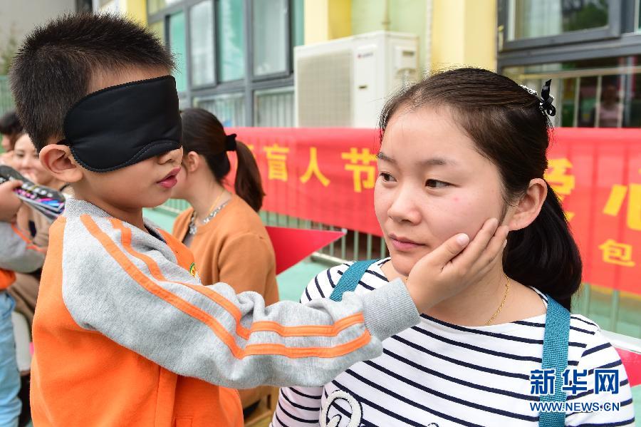 当日,国际盲人节即将到来之际,合肥市康园幼儿园邀请盲人奶奶为孩子们讲述自己的生活经历,并为孩子们蒙上双眼模拟盲人世界,感受盲人生活的艰难,以此培养孩子们关注盲人、爱护盲人并主动帮助盲人的意识。新华社记者 杜宇 摄