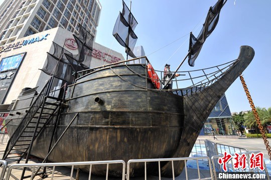 10月12日,一艘大型“海盗船”模型摆放在福州街头,吸引了许多市民的眼球。中新社记者 张斌 摄