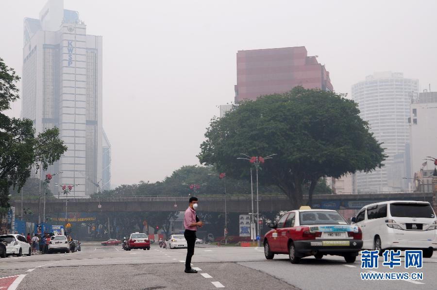 10月19日,在马来西亚吉隆坡,一名市民戴着口罩站在街头。当日,烟霾再袭马来西亚。截至当地时间下午4点,马来西亚共有20个地区的空气污染指数达不健康水平。 新华社发(张纹综摄)