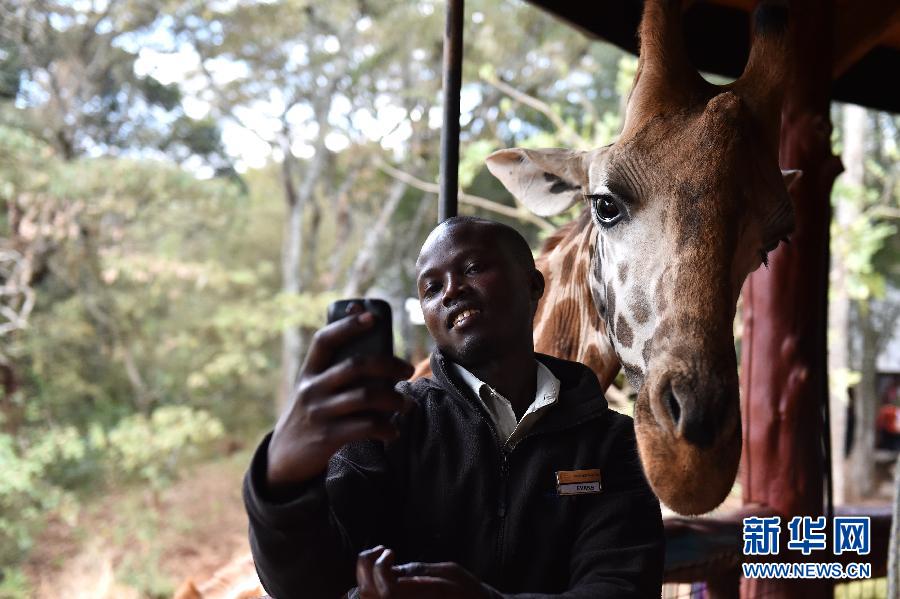 10月20日,在肯尼亚内罗毕的长颈鹿保护中心,一名工作人员与长颈鹿合影。在肯尼亚首都内罗毕有一座始建于1979年的长颈鹿保护中心。游客在保护中心可以亲手抚摸长颈鹿,给长颈鹿喂食,甚至可以被长颈鹿“亲吻”。创办者希望通过让游客亲自喂养和与长颈鹿亲密接触的行为,帮助人们理解人与自然和睦相处及保护野生动物的重要性。新华社记者孙瑞博摄