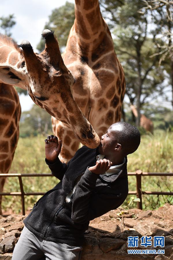 10月20日,在肯尼亚内罗毕的长颈鹿保护中心,一只长颈鹿与工作人员亲密互动。在肯尼亚首都内罗毕有一座始建于1979年的长颈鹿保护中心。游客在保护中心可以亲手抚摸长颈鹿,给长颈鹿喂食,甚至可以被长颈鹿“亲吻”。创办者希望通过让游客亲自喂养和与长颈鹿亲密接触的行为,帮助人们理解人与自然和睦相处及保护野生动物的重要性。新华社记者孙瑞博摄