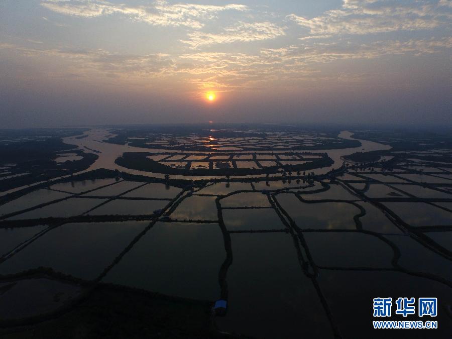 10月21日傍晚拍摄的广西钦州市郊区虾塘。近年来,广西钦州市海水养殖业发展迅速,成为农民增收重要来源。 新华社记者 黄孝邦 摄