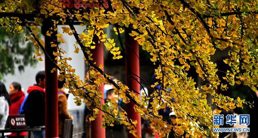 10月22日,游人在北京香山公园观赏秋色。近期,随着华北地区出现低温天气,北京市的香山公园、延庆百里山水画廊、怀柔琉璃庙、密云古北口、门头沟百花山等景区树叶纷纷变黄变红,山林一片五彩缤纷,每天吸引大量游人来观赏。新华社记者 李欣 摄