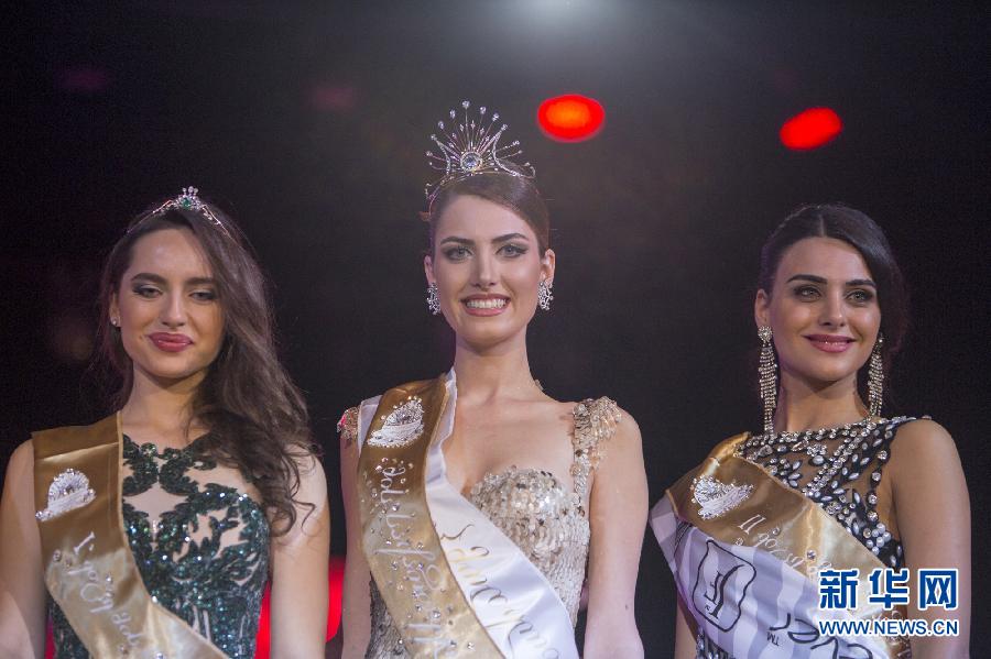 11月1日,2015格鲁吉亚小姐选美大赛在格鲁吉亚黑海港口城市巴统举行,24岁的努卡·卡洛拉什维利(中)摘得桂冠。新华社发(伊杜阿什维利摄)