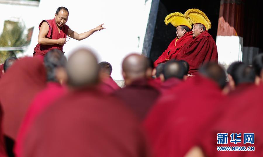 11月3日,拉萨市色拉寺举行“降神节”辩经活动。