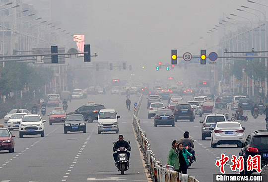 11月4日,山西太原被雾霾笼罩。中新社记者 韦亮 摄