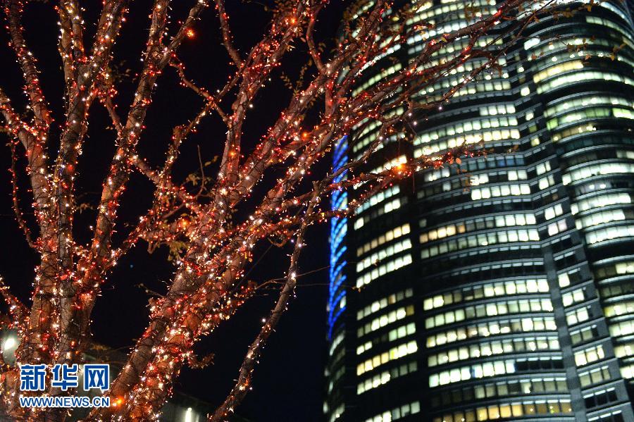 11月4日,在日本东京六本木榉坂大街,点缀在树木上的LED灯如繁星点点。当日,日本东京著名的六本木榉坂大街举办了亮灯式,120万个LED灯泡点缀在街道两旁的树枝间,犹如天上繁星入人间,给深秋寒意渐浓的东京增添了几分浪漫。新华社记者马平摄