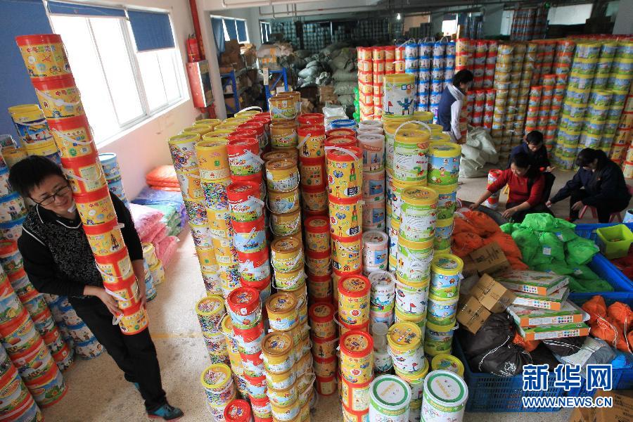 11月5日,在浙江省温州市永嘉县桥下镇“淘宝村”——西岙村,一家网店员工为即将到来的“双11”购物节备货。 “双11”临近,浙江省温州市永嘉县桥下镇5个“淘宝村”、2000多家电商开始忙碌起来,商家加快生产进度并提高货品储备量,以满足市场需求。新华社发(苏巧将 摄)
