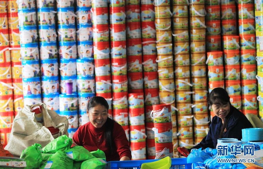 11月5日,在浙江省温州市永嘉县桥下镇“淘宝村”——西岙村,一家网店员工为即将到来的“双11”购物节备货。 “双11”临近,浙江省温州市永嘉县桥下镇5个“淘宝村”、2000多家电商开始忙碌起来,商家加快生产进度并提高货品储备量,以满足市场需求。新华社发(苏巧将 摄)