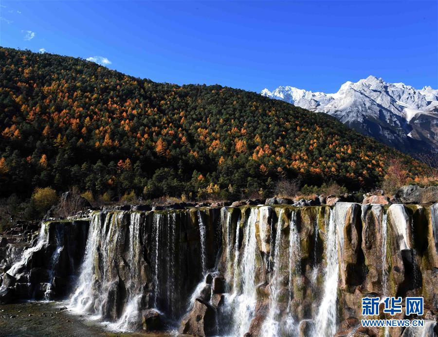 地处云南西部的玉龙纳西族自治县境内山河交错、峰奇谷秀,自然景观众多。近日,玉龙雪山周围层林尽染、碧水蓝天,风景如画。新华社记者 杨宗友摄影报道