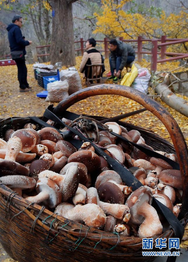 村民在古银杏树景区内销售山货土特产(11月19日摄)。