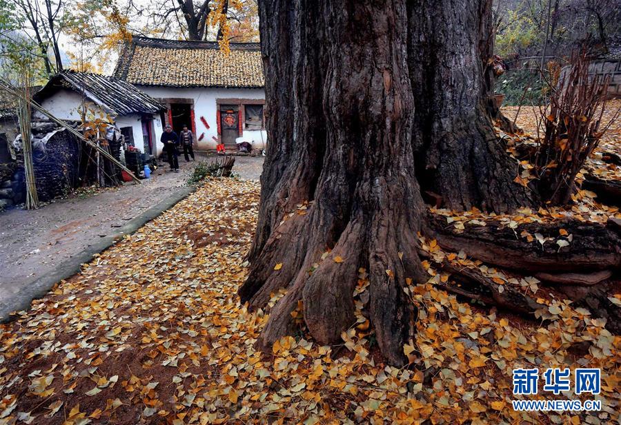 坐落在一株千年古银杏树旁的村民住宅(11月19日摄)。