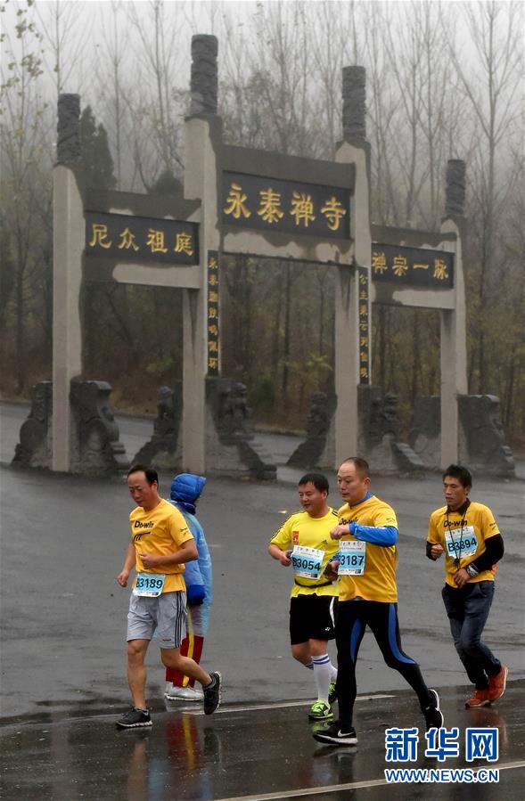 图为2015年11月22日,参赛选手在第二届中国嵩山少林国际马拉松赛中。 新华社记者李安摄