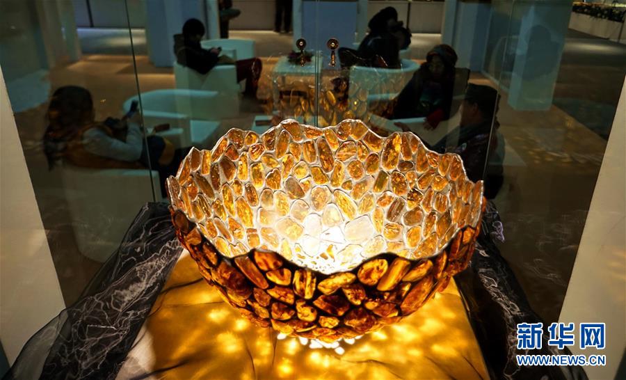 用波罗的海虫珀制作的灯罩(11月22日摄)。新华社记者李欣摄