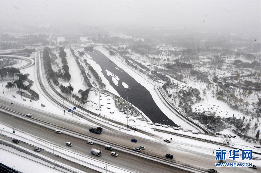 这是郑州市区一处城市公园雪景(11月24日摄)。新华社记者朱祥摄