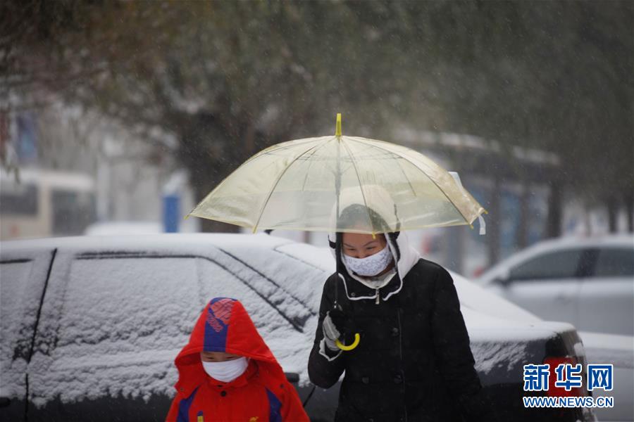11月29日,在吉林省吉林市,人们在街头冒雪出行。吉林省气象台29日14时46分发布暴雪蓝色预警,预计未来24小时,通化南部、白山、延边西南部、长白山保护区将出现大到暴雪。有关部门提醒人们出行做好防范,注意交通安全。新华社发(朱万昌 摄)