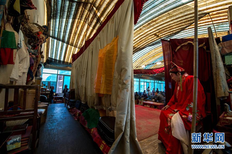 77岁的演员冯莲洲坐在舞台边等待进场演出(11月28日摄)。在云南昆明篆新农贸市场内,有一个破旧的小“剧场”。每天下午2点,昆明滇剧花灯团都会在这里演出。昆明滇剧花灯团上世纪80年代成立,现有20余名成员,大部分是老年人。由于经费紧张,除了服装,演出用品多由演员自备。滇剧是云南主要地方剧种,历史悠久,表演既承袭中国戏曲传统,又有浓郁的云南地方特点,2008年被列入第二批国家非物质文化遗产保护名录。然而,随着时代变迁,唱滇剧的人越来越老,听戏的人也越来越少。目前昆明滇剧花灯团每场演出观众不过30人左右,剧团老板高芹英这些年一直入不敷出。这些热爱滇剧的观众和演员,是剧团坚持至今的主要原因。 “在云南传统艺术的大花园里,滇剧就像一朵美丽的山茶花。希望能有更多的人关注滇剧、喜爱滇剧,把它传承下去。”高芹英说。 新华社记者 胡超摄