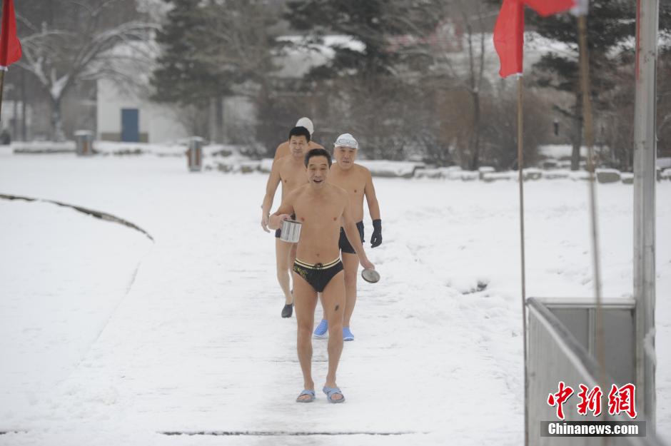 长春市民大雪过后破冰戏水