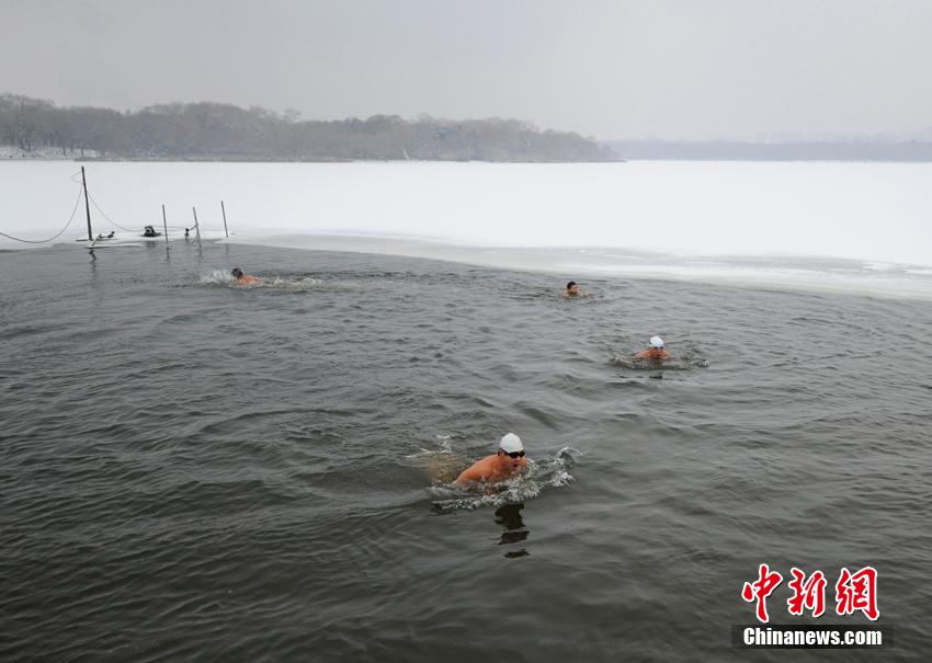 长春市民大雪过后破冰戏水
