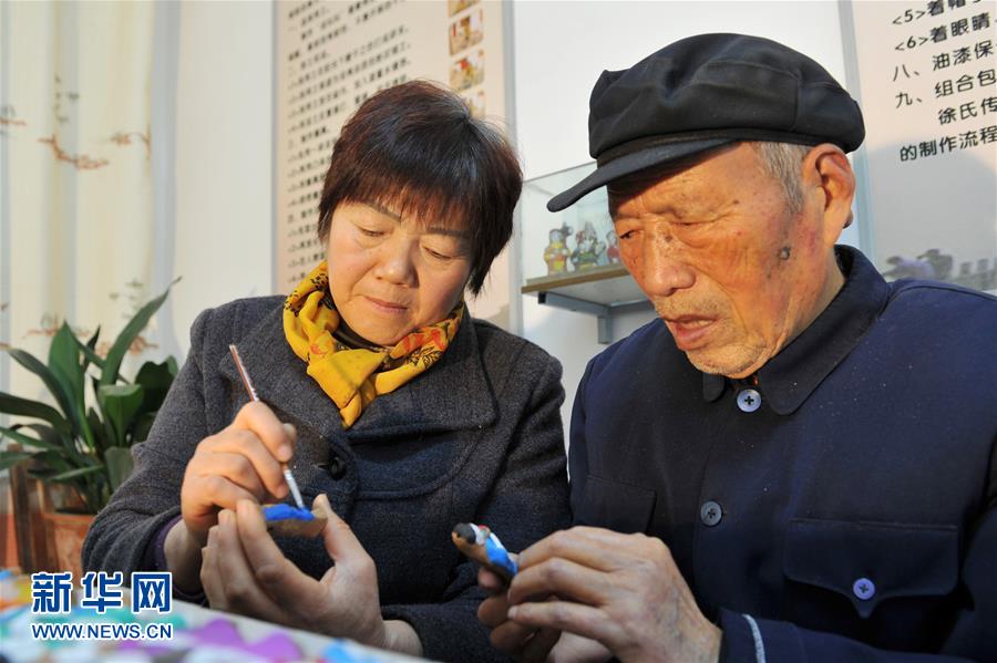 徐文岳(右)与刘新霞交流“泥叫叫”传统制作技艺(11月23日摄)。 新华社记者 陈昌奇 摄